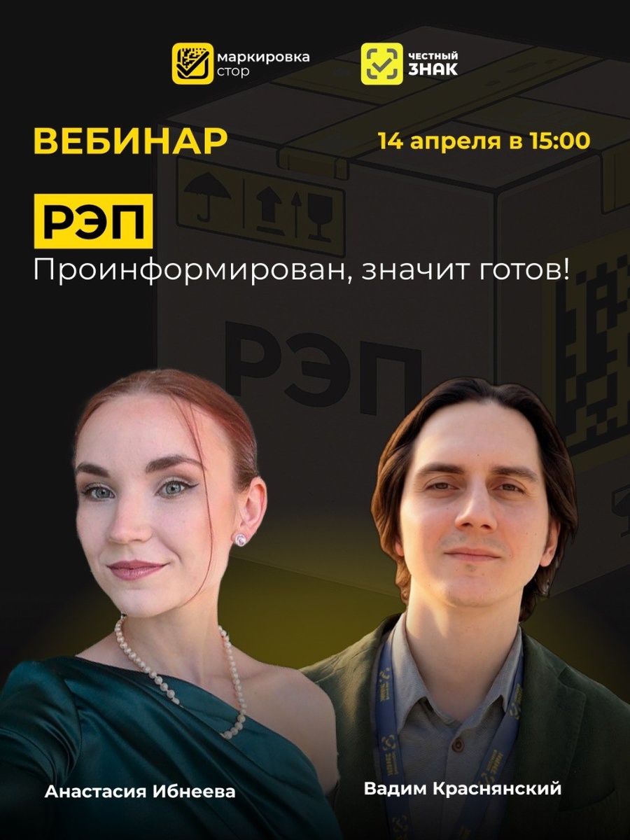 Проинформирован, значит готов! Привет, друзья! Специально для вас готовим вебинар с официальным представителем ЦРПТ «Честный Знак» по радиоэлектронике. Без воды и скучных инструкций! Всё по делу, с реальными примерами и ответами. 🫥 Дата и время: 14 апреля в 15:00 Что будет: ✅ Полный список товаров РЭП, которые попадают под маркировку ✅ Как на самом деле работает система ✅ Точные даты и этапы запуска ✅ Как автоматизировать маркировку за 5 минут через Markirovka.Store Спикеры: Вадим Краснянский Представитель ЦРПТ «Честный Знак» по товарной группе РЭП Анастасия Ибнеева Руководитель отдела внедрения Markirovka.Store 🔥 Регистрация открыта