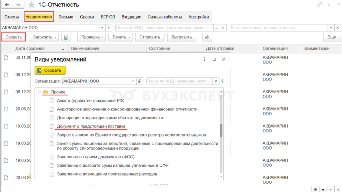 Как сформировать электронный документ о предстоящей поставке в 1С?