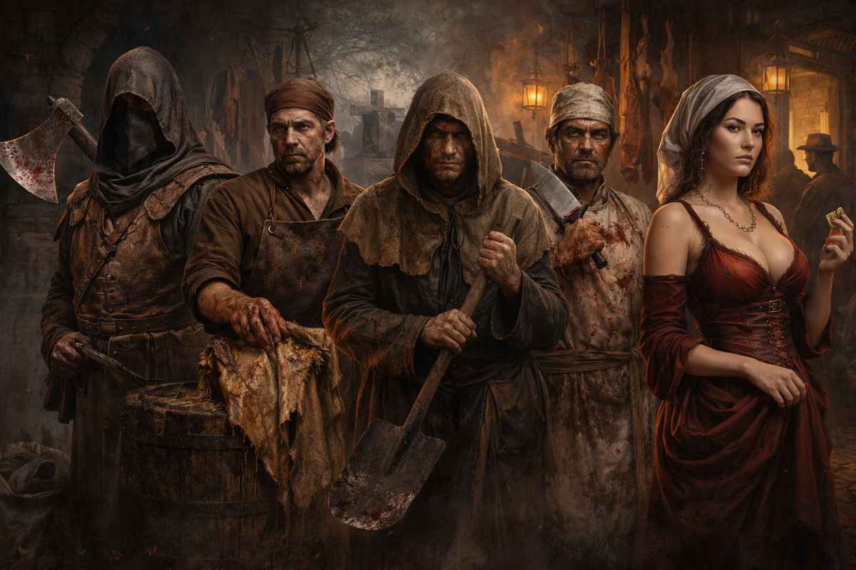 И важная деталь: презирали не все бедные профессии подряд. Крестьянин мог быть нищим, но не считаться бесчестным. А вот ремесло, связанное с кровью, смертью, разложением или моральной двусмысленностью, легко попадало в зону общественного презрения.
