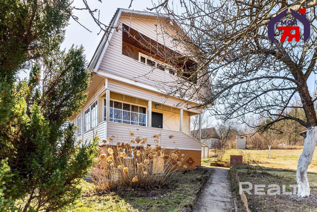 Уютная дача в Смолевичском районе появилась в продаже на Realt. В доме два жилых этажа плюс гараж. Отопление печное и есть камин. А еще на участке находится баня и фруктовый сад. Рассказываем, сколько стоит такой дом в садовом товариществе. Садовое товарищество «Белстандарт» находится в 30 километрах от МКАД в Московском направлении. Это Заболотский сельский совет Смолевичского района. До железнодорожной станции меньше двух километров или 20 минут пешком, а до остановки маршруток — 10 минут. Автомобильная дорога асфальтирована до ворот в садовое товарищество. Рядом есть два продовольственных магазина. Дом бревенчатый. Построен в 1996 году. В доме три этажа, два из которых жилые. На первом находится гараж, погреб и склад. На общую площадь приходится 65 квадратов, а жилая замнимает 79 квадратных метров. На втором (или первом жилом) уровне — гостиная с камином и кухня. В гостиной два окна, которые выходят на южную и западную стороны. Выше находятся еще две комнаты площадью 32 и 15 квадра