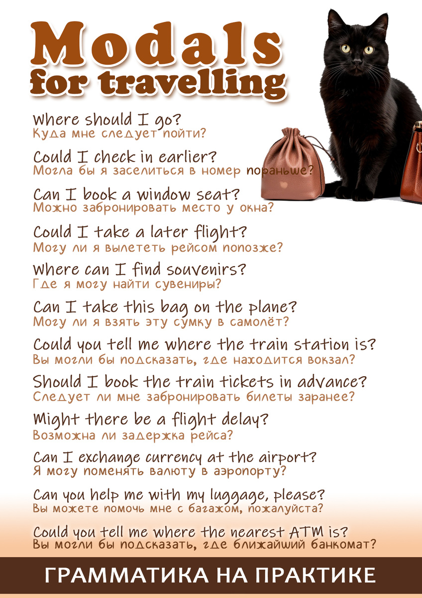 Модальные глаголы - он как кубики! Очень удобно - не нужно никаких do, does или did - просто ставите их в нужное место. И часто они используются во фразах, когда мы путешествуем. Подробнее о том, как работают эти модули, смотрите в видео: https://dzen.ru/video/watch/67ceb80b1cdbb51640a70e83, https://dzen.ru/video/watch/67d9b5ca4e11827fc19980d6, https://dzen.ru/video/watch/67e2c7fec0581b22563669c8, https://dzen.ru/video/watch/67ecfc957debbc30d7e51bf7