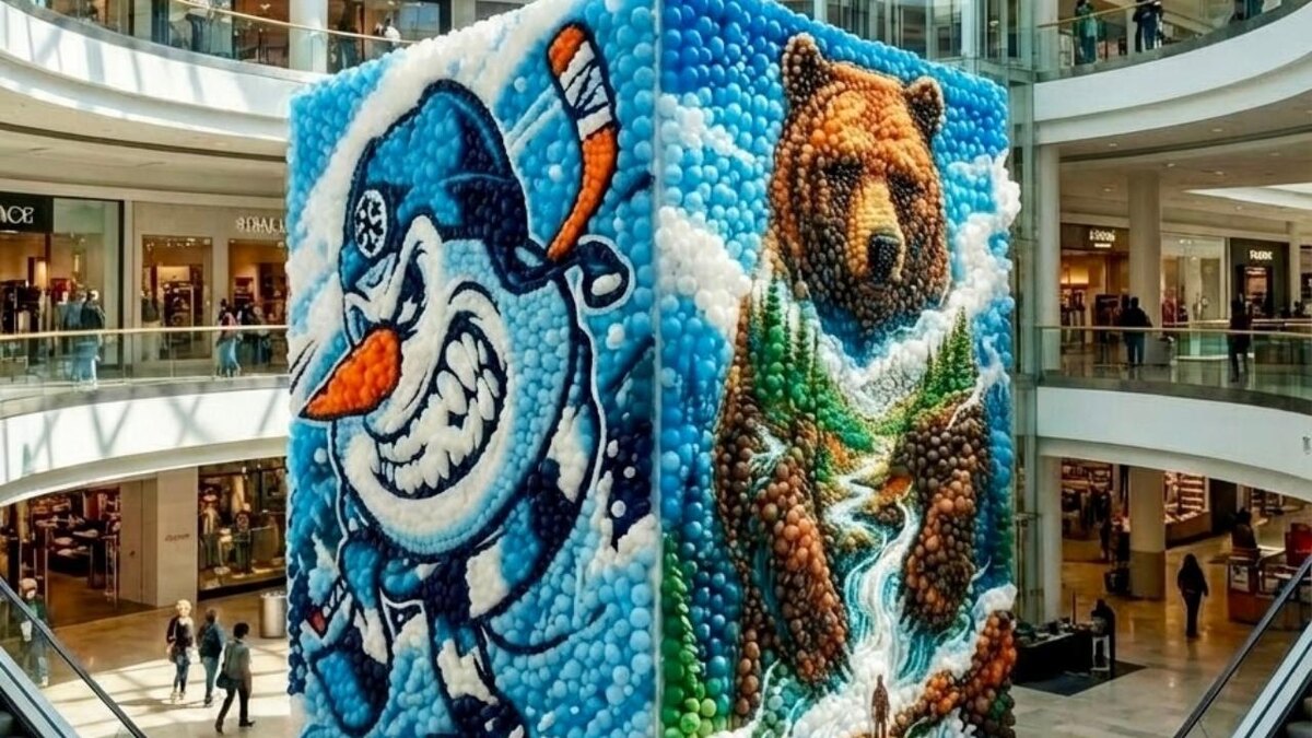 В СибМолле появилось панно из воздушных шаров со снеговиком ХК «Сибирь»