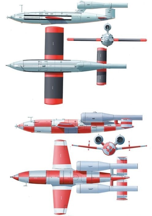 📷❗️Самолёты-снаряды 10Х и 16Х с пульсирующими воздушно-реактивными двигателями (ПуВРД), разработанные конструкторским бюро под руководством