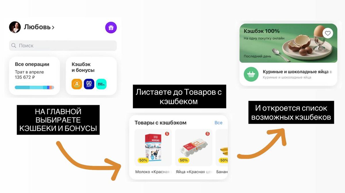 : 1) на шоколадные и куриные яица. Максимум кешбека -400 руб. Акция в приложении банка в Городе. Сегодня последний день! 2) на энергетические напитки в магазинах Магнолии. Максимум кешбека -200 рублей. Акция до 13 апреля 3) на протеиновый коктейль bombbar на WILDBERRIES Максимум кешбека -100 рублей. Заказать и оплатить нужно сегодня, получить можно позднее. Общий процесс получения кешбека такой: 1. Заказываете товар 2. Оплачиваете с карты Т-банка 3. Прикладываете чек о покупке 4. Приходит кешбек на карту т-банка Инструкция как найти другие акции на 1 картинке.