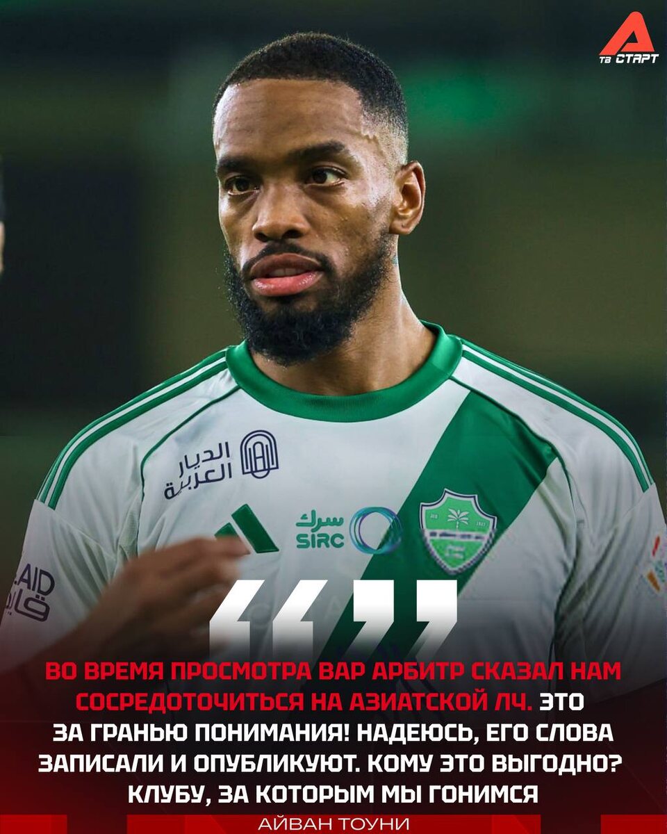Айван Тоуни публично объявил судей в предвзятости, а его клуб «Аль-Ахли» подал официальную жалобу после ничьей с «Аль-Фейхой», обвинив судейство в фаворитизме по отношению к «Аль-Насру». Отставание в таблице — 4 очка 👀 Подписывайся на ТВ СТАРТ в MAX📲