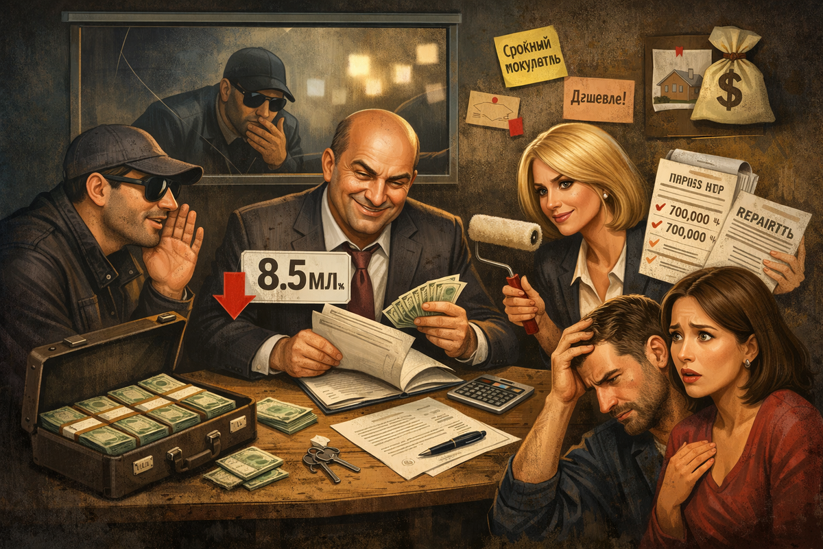 Комментарий юриста от Жизни: «Срочный покупатель» — это ряженый перекупщик. Его задача — зафиксировать в вашей голове цифру 8.5 млн. Завтра придет другой «срочный» с бюджетом 8.6 млн, и вы уже будете счастливы. Риелор и перекупщик делят разницу между 8.5 и вашими 10 млн пополам. Вы думаете, что продали за 8.5. По факту, вы подарили «Оборотням» 1.5 млн.