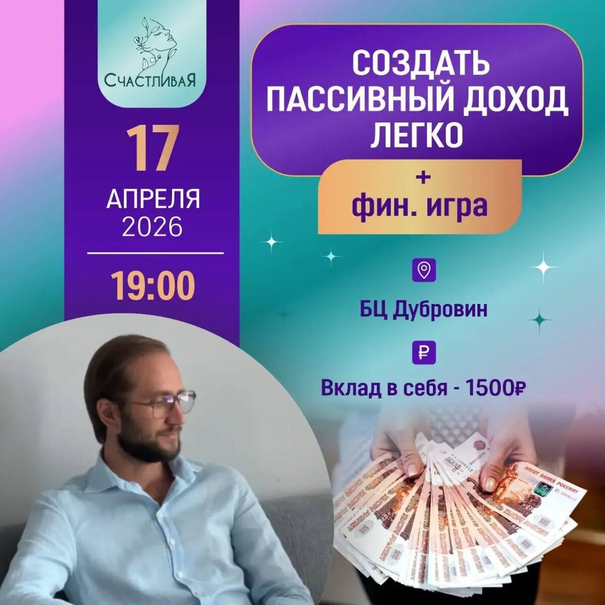 ! 💸 Вас ждёт уникальная встреча с финансовым консультантом клуба «СчастливаЯ» — Константином. Это не просто лекция, а настоящий тренинг, который поможет вам взглянуть на свои финансы по-новому! ЧТО ВАС ЖДЕТ: 🔥 Секреты пассивного дохода без вложений — узнайте, как начать зарабатывать, не рискуя своими средствами. 🎲 Игра «Крысиные бега» — за 2–3 часа вы проживёте 20–30 лет финансовой жизни, увидите свои сильные и слабые стороны, научитесь принимать решения и почувствуете вкус успеха! 💡 Практические советы — как получить налоговый вычет, заработать на коротких страховых программах и воспользоваться госпрограммой до 360.000р. 📅 17 апреля, 19:00–21:00. 📍 Место: БЦ Дубровин (центр, гостевая парковка). 💰 Вклад в себя: 1500р. После встречи вы получите доступ в закрытый финансовый чат «СчастливаЯ» с полезными материалами и сможете записаться на бесплатную индивидуальную консультацию с Константином! Не упустите возможность! Для записи: Василина Денисочкина тг, мах, ВК 8-912-22-23-18