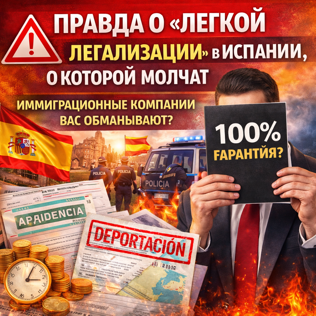 ❌ «не выполнять условия» Сценарий почти всегда одинаковый: Потому что это сложно продать. Гораздо проще сказать: 👉 «Все будет легко» Чем объяснять: Обратите внимание: Хороший специалист: Плохой: 👉 Легализация в Испании — это не услуга “под ключ”. Э