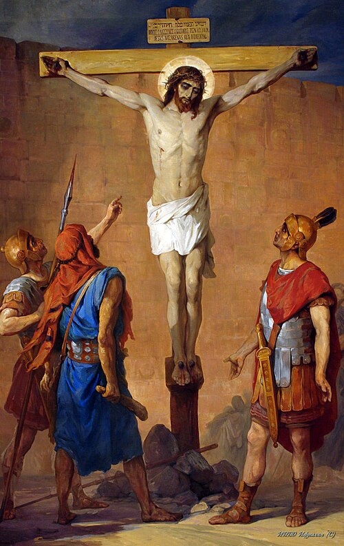 Ну а Иисуса, как мы все знаем, распяли, приведя в исполнение приговор синедриона, подтвержденный по требованию толпы римским наместником Понтий Пилатом.