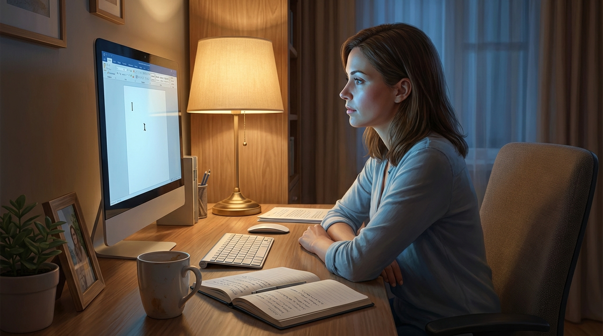Вдруг она поняла: эта тихая опора — не в курсоре. Она в том, что она может просто нажать на кнопку. Она хозяйка этого мигания.