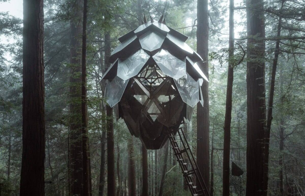 В лесу Калифорнии (США) сдают уникальный дом на дереве в виде гигантской сосновой шишки
