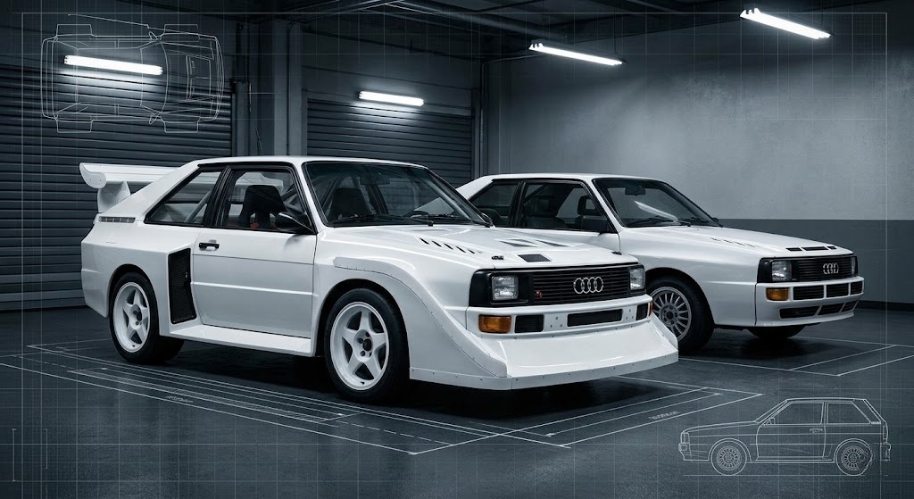 Представь: ты стоишь на светофоре, а рядом тормозит старая Audi Quattro или Peugeot 205. Но выглядит она неестественно: арки раздуты до неприличия, в крыльях и капоте сквозные дыры, а сзади торчит антикрыло размером с верстак.