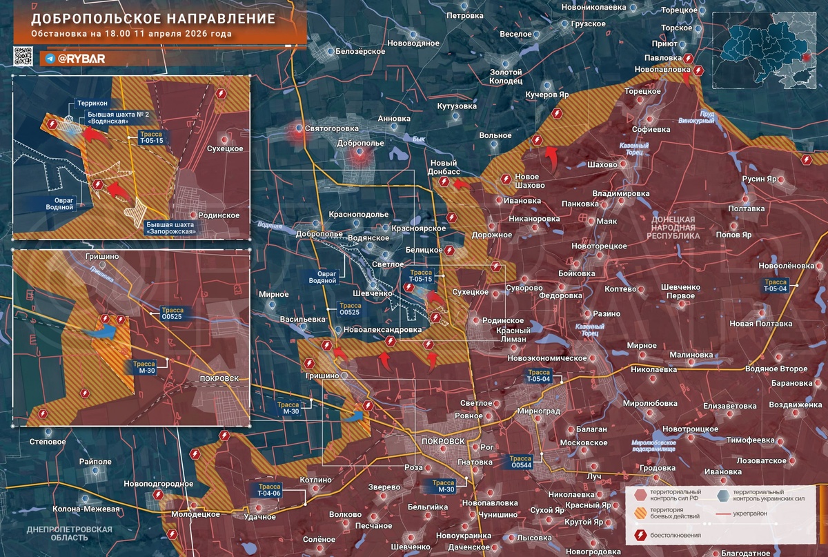 На Добропольском направлении российские войска планомерно наступают в сторону одноименного города. Основные бои разворачиваются на рубеже Новый Донбасс — Белицкое — Родинское. 🔸Наиболее интенсивные столкновения протекают в окрестностях Родинского на подступах к Шевченко. Там российские штурмовики пытаются закрепиться на территории бывшей шахты № 2 «Водянская». Основное противодействие им оказывают украинские операторы БЛА 425 ошп «Скала». Бойцы 102 мсп 150 дивизии занимаются перехватом тяжелых дронов ВСУ со сбросами, прикрывая с неба российскую пехоту. 🔸Юго-западнее идут тяжелые бои за контроль над Гришино. Украинские формирования ранее перебросили в окрестности села много живой силы, пытаясь постоянными локальными контратаками сдержать натиск и не допустить выхода российских штурмовиков в Новоалександровку. Некоторое время назад украинские десантники осуществили вылазку на опорный пункт ВС РФ южнее Гришино. Данная тактика нередко используется украинскими формированиями на разных нап