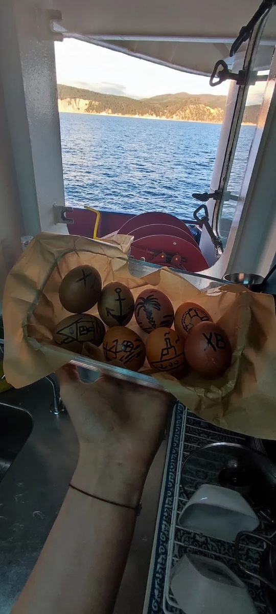 Как отмечают Пасху на флоте: за считаные часы до главного праздника православных христиан. Правда, если всё происходит в море, то не всегда идёт как по маслу. Вот прямо сейчас подоспели фото с борта одного из судов для МорфлотСПб. По словам #ШефANTONIO, яйца красить нечем, да и форм для кулича нет. Но это не повод не встречать праздник. Выход есть всегда!