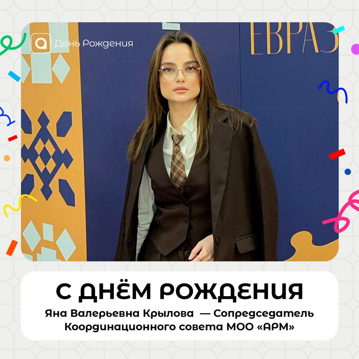 🎉 Поздравляем с днём рождения Сопредседателя Координационного совета АРМ Яну Валерьевну Крылову