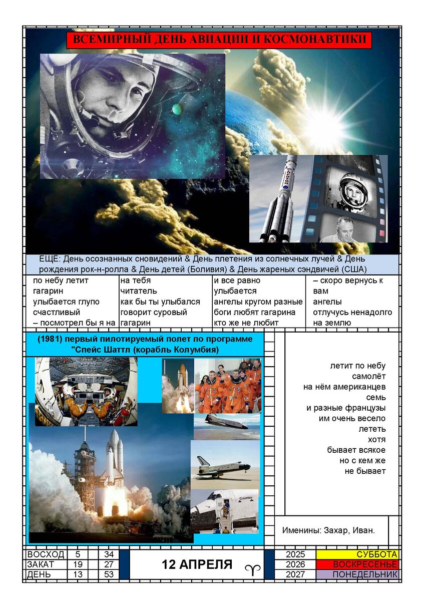 КАЛЕНДАРЬ 12 АПРЕЛЯ