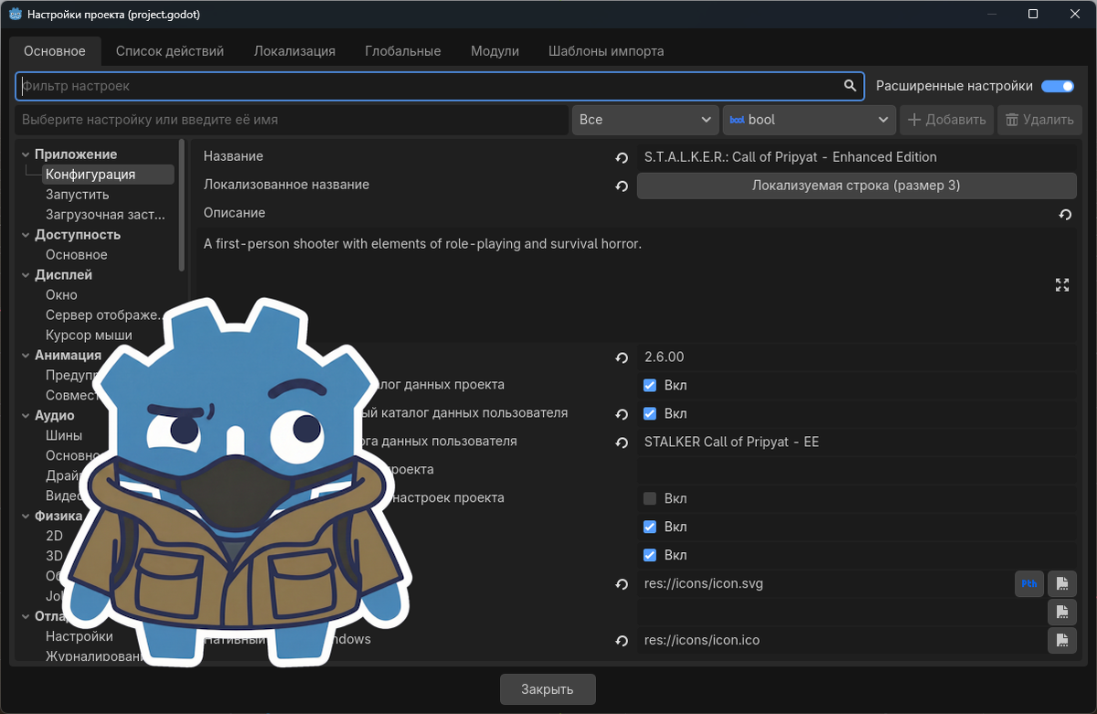 Внимание: если вы сами разрабатываете на игровом движке Godot ваши проекты, я не призываю делать так же, как и не агитирую. Все настройки — чисто мой личный опыт, исследование, а также некоторые рекомендации самих разработчиков Godot.
