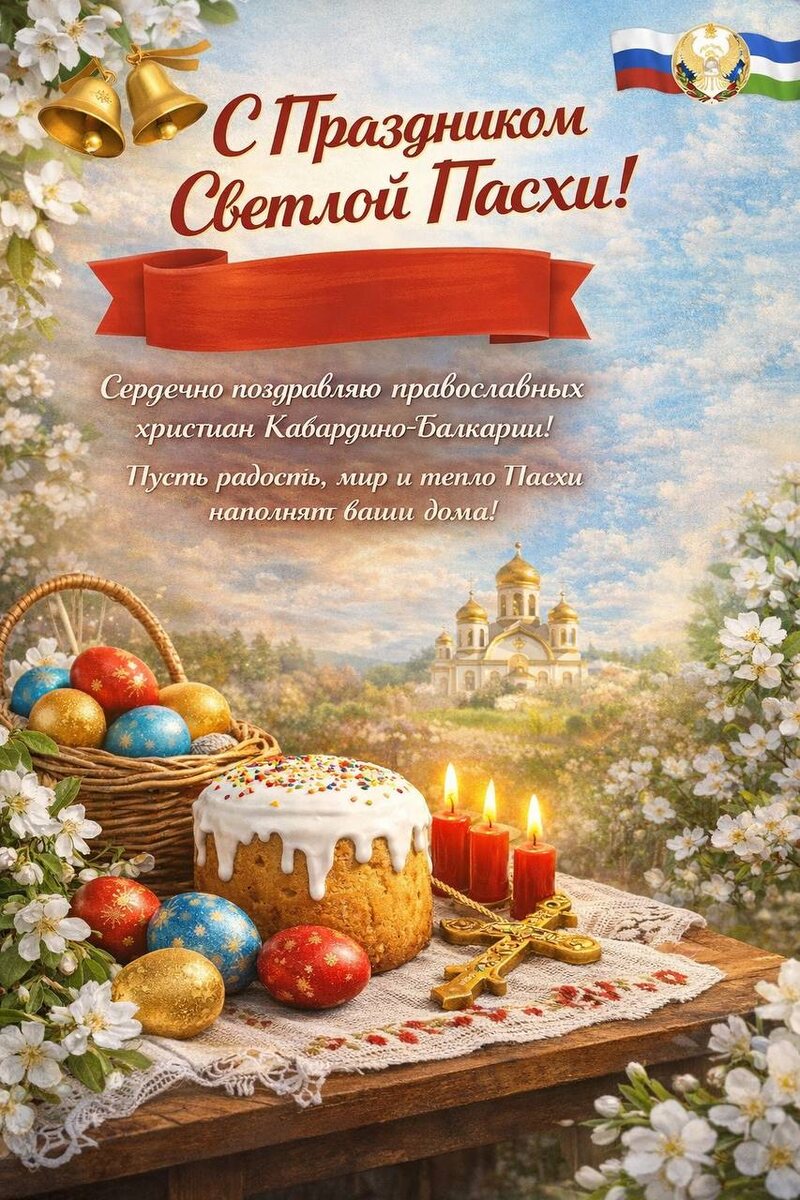 ! Пусть этот светлый день наполнит ваши дома теплом, радостью и благополучием. Пусть в сердцах царят вера, надежда и любовь, а рядом всегда будут родные и близкие люди. Желаем мира, крепкого здоровья, добра и душевной гармонии. Христос Воскресе! Telegram: Новости КБР | Instagram: 07.news | Дзен: 07news