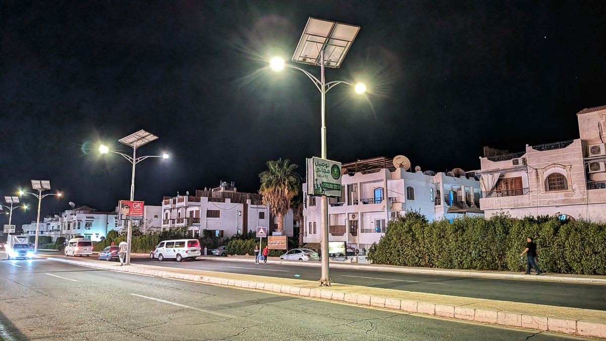 Просто потрясающе, правда? Весь берег горит и переливается огнями. Это рестораны и ночные клубы Хадабы. А вдали виден маяк Эль-Фанар.
