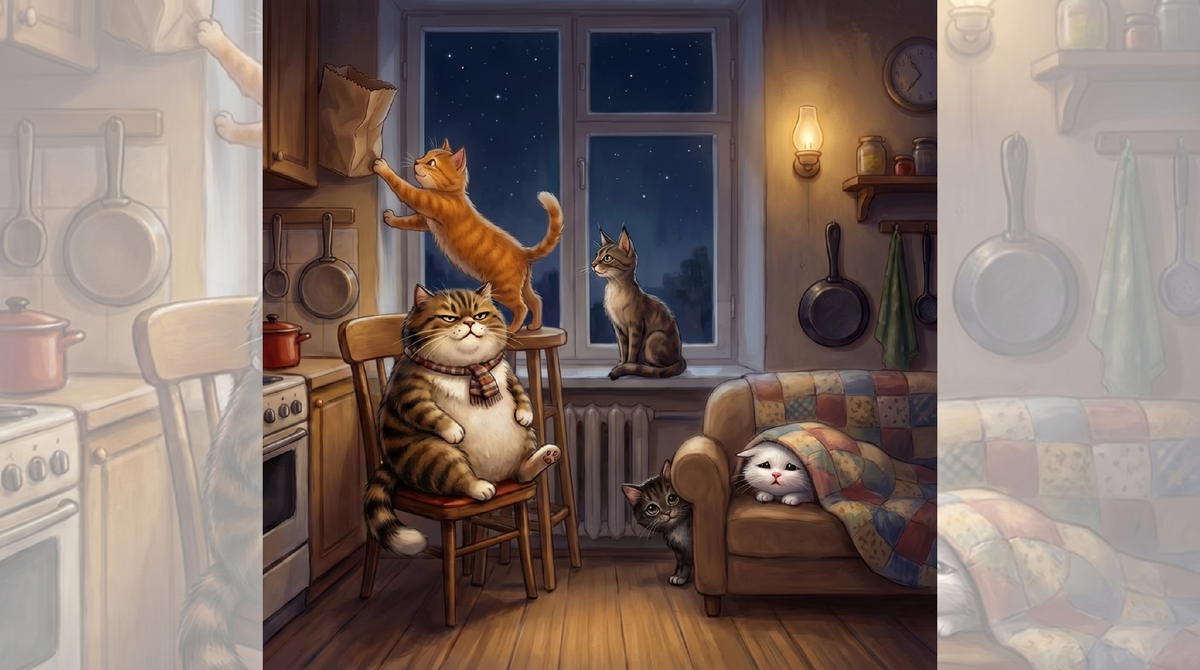 Однажды ночью в Мурландии случилось преступление. О, нет, оно не было связано с колбасой. Всё было гораздо хуже. На этот раз виновником оказался…шуршащий пакет. Хозяйка привезла из магазина вкусняшки и положила пакет на верхнюю полку, чтобы хвостатые не нашли. Она не знала главного: в Мурландии шуршание слышат не ушами, а душой. В три часа ночи Рыжик проснулся от мысли, которая приходит только самым добрым котам: «А вдруг вкусняшки скучают одни в пакете?» Он встал очень тихо. Настолько тихо, что даже сам себе не поверил. И пошёл на кухню. Генерал проснулся мгновенно. Он не знал, что происходит, но знал главное: если ночью кто-то идёт на кухню без приказа, значит, порядок, заведённый в Мурландии, в опасности. Лира открыла один глаз и подумала: «Только не это». Снежок поднял голову, а потом зарылся носом в толстый плед, который лежал на диване. У него в голове промелькнула тревожная мысль: «Это же не улица, а всего лишь кухня, но ночью кухня – тоже страшновато». Кнопка появилась из ниотк