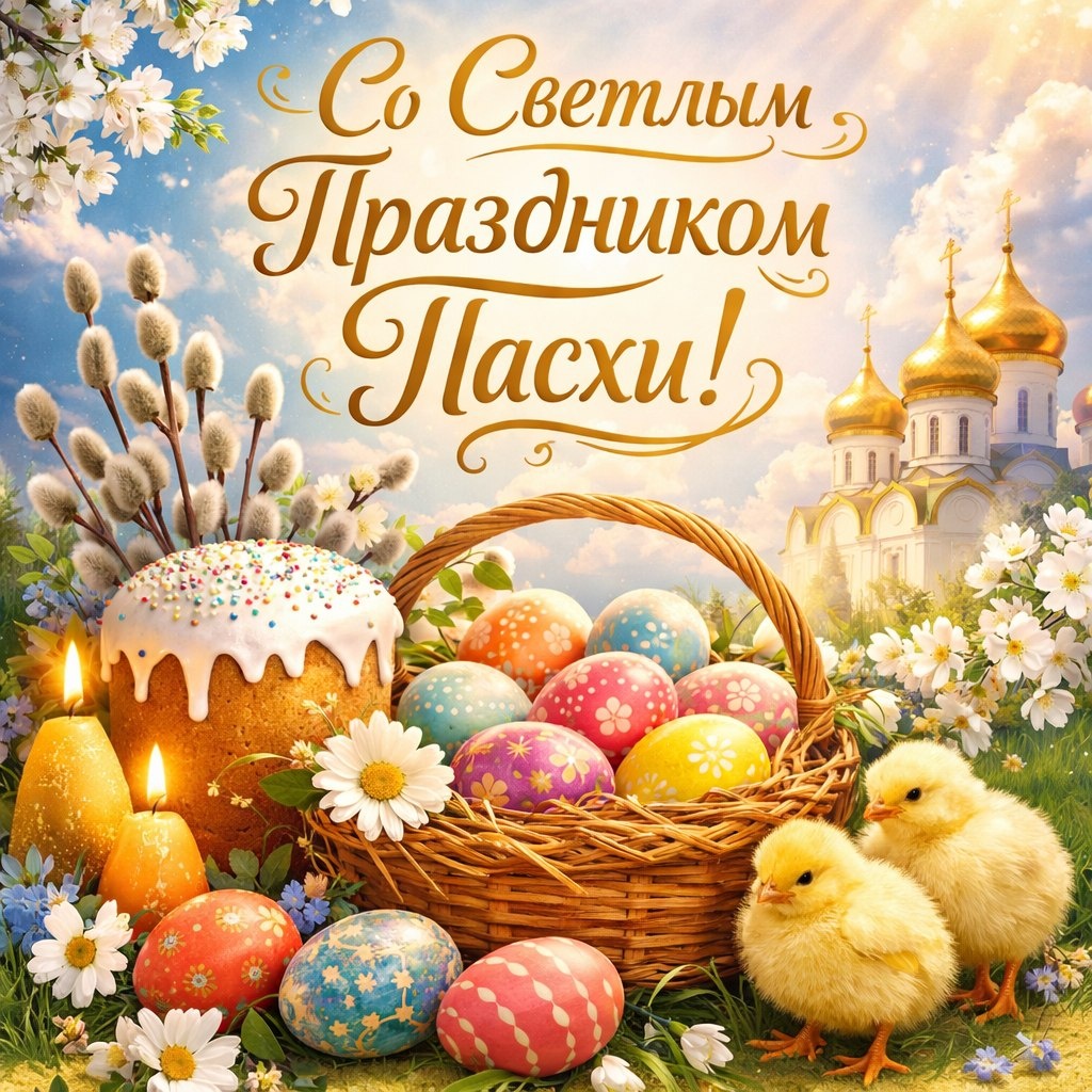 С Пасхой Христовой, дорогие! В этот торжественный и спасительный день, когда ночь сменяется светом, а скорбь — ликованием, от всей души желаю вам ощутить ту невыразимую радость, которую испытали жены-мироносицы у пустого Гроба. Пусть весть «Христос Воскрес!» отзовется в вашем сердце не просто словами, а живой, трепетной верой, которая сокрушает все страхи и сомнения. Светлого вам праздника, молитвенного настроения и настоящей, благодатной весны в душе!