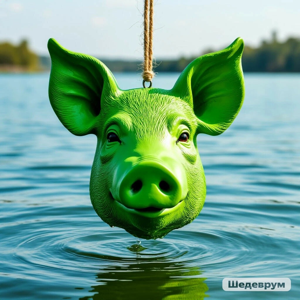 Однако раз эта подвешенная над водой за нитку свиная башкенция - это зелёный цвет, то значит, она над водой зеленела. Зачем-то. Вот и весь сказ.