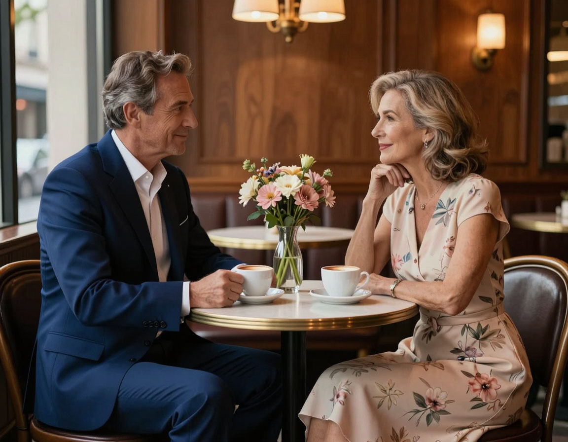 Свидание назначили в уютном кафе с видом на парк. Анжелика долго выбирала наряд: в итоге остановилась на лёгком платье цвета лаванды и жемчужных серьгах – подарок мужа на годовщину свадьбы. Перед выходом она немного понервничала, её руки слегка дрожали, а сердце билось чаще обычного, но дети успокоили её:
