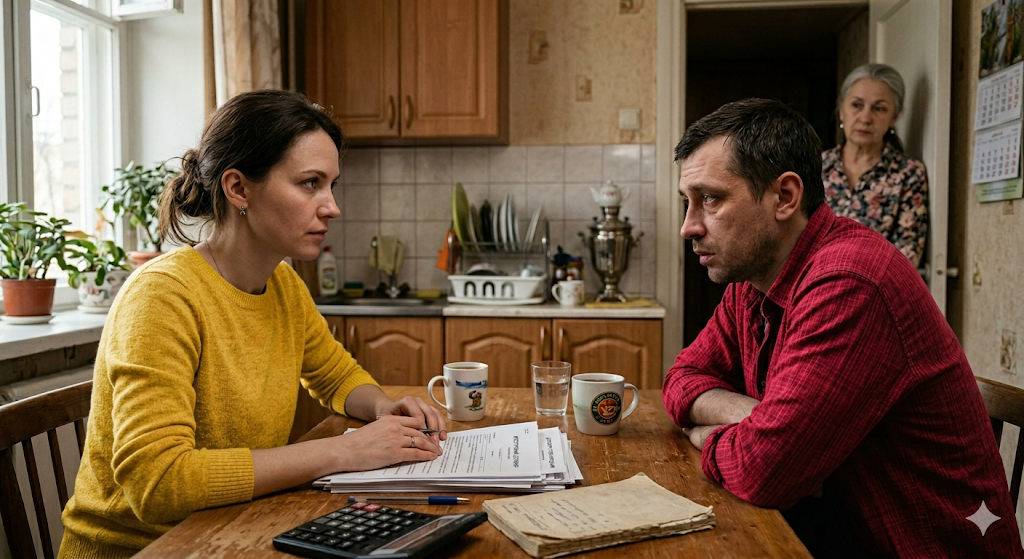 Переломный момент случился в ноябре. В обычный вечер, когда Лена пришла с работы, поставила сумку и услышала голоса из гостиной. Сергей сидел с матерью. На столе лежали какие-то бумаги.
