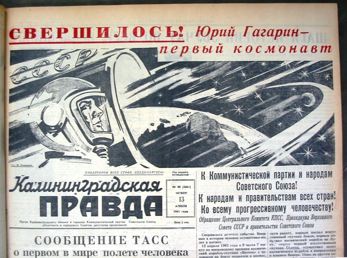 Кстати, в обычном номере «Калининградки» за 12 апреля 1961-го была опубликована статья о космонавтах-собаках. Вот её последний абзац: «В опытах с животными наука получает вполне определённые данные, которые являются основой для разработки мер, обеспечивающих безопасный полёт человека в космосе». Как в воду глядели!
