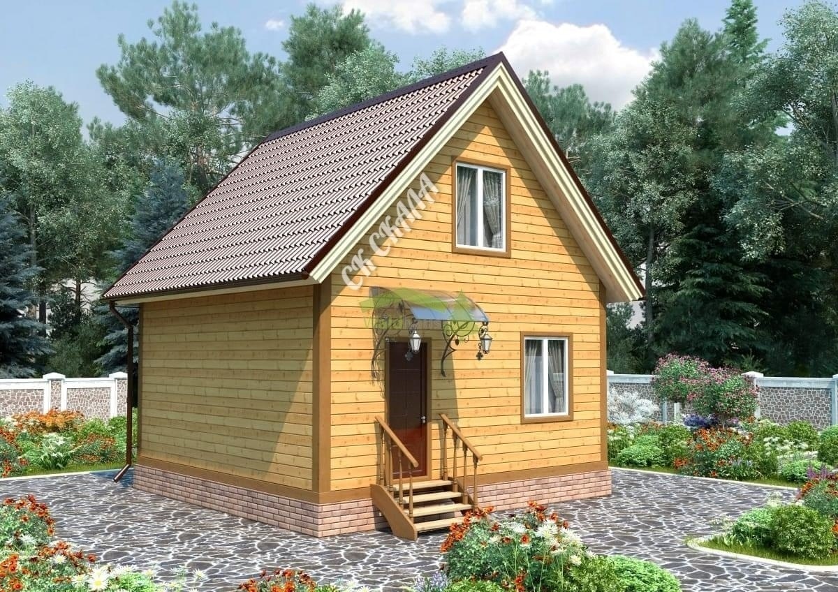 Дачный дом с мансардой, размер 6х4 м + крыльцо 4 м