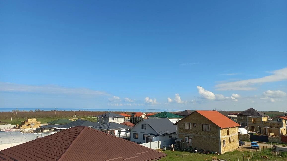 Покажите море, вид из ваших окон и с участка, пожалуйста! — просит С. М. Эх, с участка у нас море, увы, не видно. Мы же не на первой линии находимся, не в каком‑нибудь пятизвёздочном отеле с видом на залив! Хотя до моря по прямой примерно километр. Не так уж и далеко, если подумать. Но несмотря ни на что, море мы всё‑таки видим, особенно в ясную погоду. Вот, смотрите: на этом фото — над садами тонкая полоска моря. Оно почти одного цвета с небом, будто природа решила сыграть с нами в игру «найди десять отличий». Только облака оттеняют и позволяют разглядеть горизонт. Без них, честное слово, я бы и сама засомневалась: море это или просто особенно синяя тучка решила притвориться волной. Фото, конечно, не передаёт всей картины. Вживую гораздо красивее. Как говорится, «лучше один раз увидеть, чем сто раз услышать». А ещё лучше — приезжайте! А на следующем фото — вид на море и на соседнее село Андреевка, которое уже расположено в Севастопольском районе. Тут море — еле различимая полоска, та