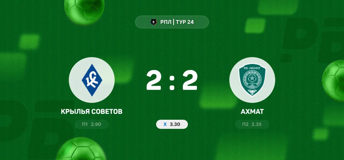 Матч 24-го тура РПЛ между «Крыльями Советов» и «Ахматом» завершился результативной ничьей - 2:2. Но за этим счётом скрывается гораздо больше, чем просто обмен голами. Для обеих команд это очко прозвучало по-разному, и весенняя нервозность в Самаре ощущалась особенно остро. Для «Крыльев» ничья с «Ахматом» - это не просто одно очко, а реальный шанс остаться вне зоны стыков. После 23 туров самарцы замыкали опасную зону, но благодаря этому результату поднялись на 12-е место и получили передышку. Теперь у команды Сергея Булатова шесть финальных матчей, в которых нужно набрать минимум 9 очков, чтобы избежать переходных игр. Весенний отрезок для «Крыльев» - это полоса испытаний: календарь сложный, а психологическое состояние команды после смены тренера и поражения в Кубке оставляет желать лучшего. Но дома весной самарцы выглядят надёжно, и ничья с грозненцами - важный шаг к спасению. Для «Ахмата» ничья в Самаре - рабочий результат. Команда уже решила задачу сохранения прописки в РПЛ и даже