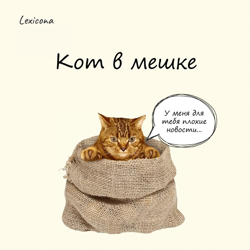 Выражение появилось в Средневековье, когда поросят продавали и покупали на ярмарках. Удобнее всего переносить их было в мешках. Иногда незадачливых крестьян обманывали и меняли поросенка на кота. Разница в весе была не очень заметна, так как молочный поросенок весит плюс минус как и большой кот. Когда новый владелец открывал мешок, его ждал сюрприз - ошалевший кот выскакивал и убегал.