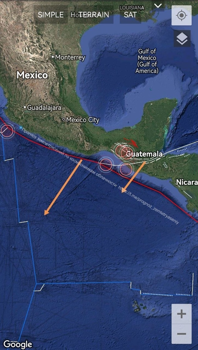 Для Гватемалы, Сальвадора и южной Мексики в течение 9 дней есть вероятность землетрясения М6.5-7+