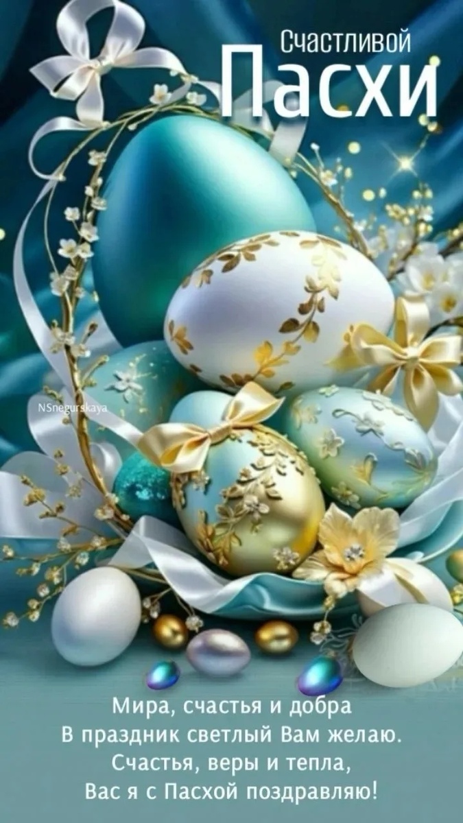 Мы поздравляем вас с этим большим светлым праздником - Светлой Пасхи! Желаем вам, чтобы ваш стол ломился только от еды, и чтобы в этот праздник вас окружали родные и близкие вам люди!