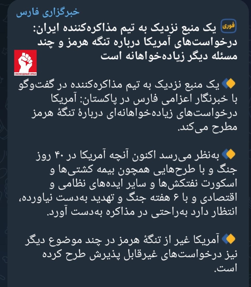 🛑 Иранский источник утверждает, что США на переговорах выкатили не только тему Ормузского пролива, но и ряд других неприемлемых условий. Делегация Ирана, по его словам, намерена отстаивать то, что уже было достигнуто силой. Переговоры, как сообщали западные СМИ, после паузы могут продолжиться уже сегодня ночью или завтра. Подпишитесь на канал