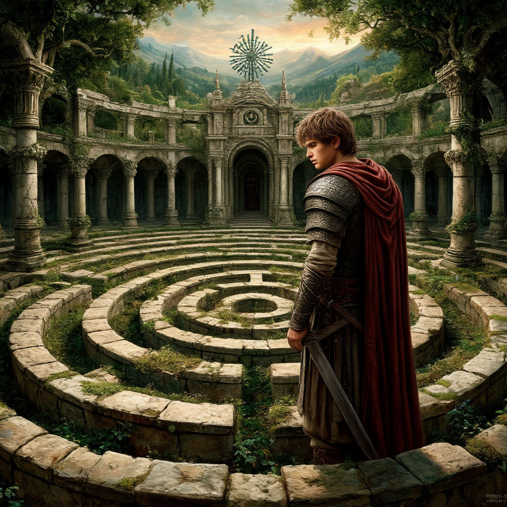 В одном городе жил юноша, которого звали Александр. Он был очень умным и смелым, и хотел совершить что-нибудь особенное. Но в его жизни никаких необычных событий не происходило, и Александр решил отправиться в путешествие. Через несколько дней он добрался до города, в центре которого был храм. Этот храм был большой и красивый, но из него доносился очень странный звук. - Интересно, что это за звук? — подумал Александр, и решил у кого-нибудь об этом спросить. Возле храма был большой зеленый сад-лабиринт, у стены которого сидел какой-то старик. На вид старик был добрым, и Александр решил с ним поговорить. - Здравствуйте, - начал он — вы, случайно не знаете, кто издает те странные звуки, которые доносятся из храма? -Знаю, - вздохнул старик — я живу в этом городе всю свою жизнь, и работаю Хранителем в библиотеке храма. И я уже давно жду того, кто освободит меня от стража храма. - Страж храма? -переспросил Александр — а это кто? - Не знаю — пожал плечами старик — Дело в том, что я его ник