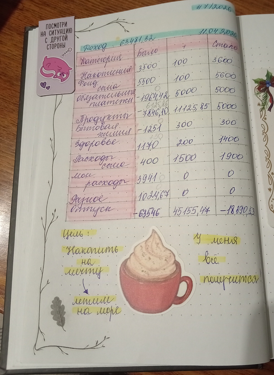 Итак, на конец дня 11.04.2026, у меня в конвертах следующие цифры: