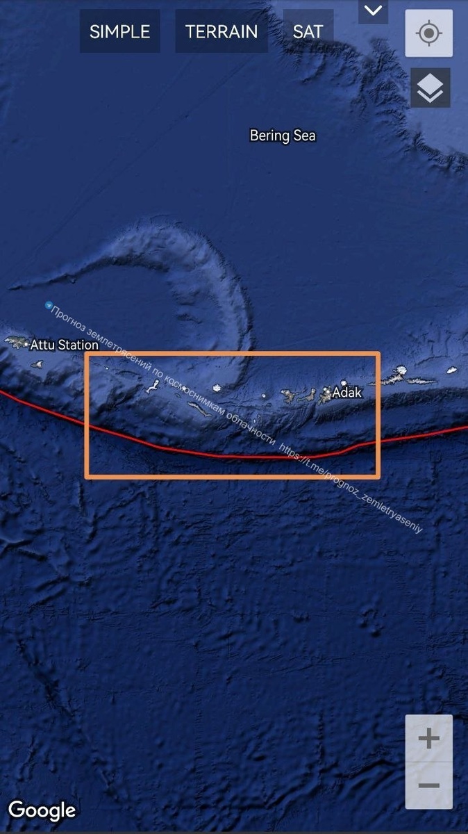 По Алеутским островам есть вероятность землетрясения до М6.5 в течение 9 дней