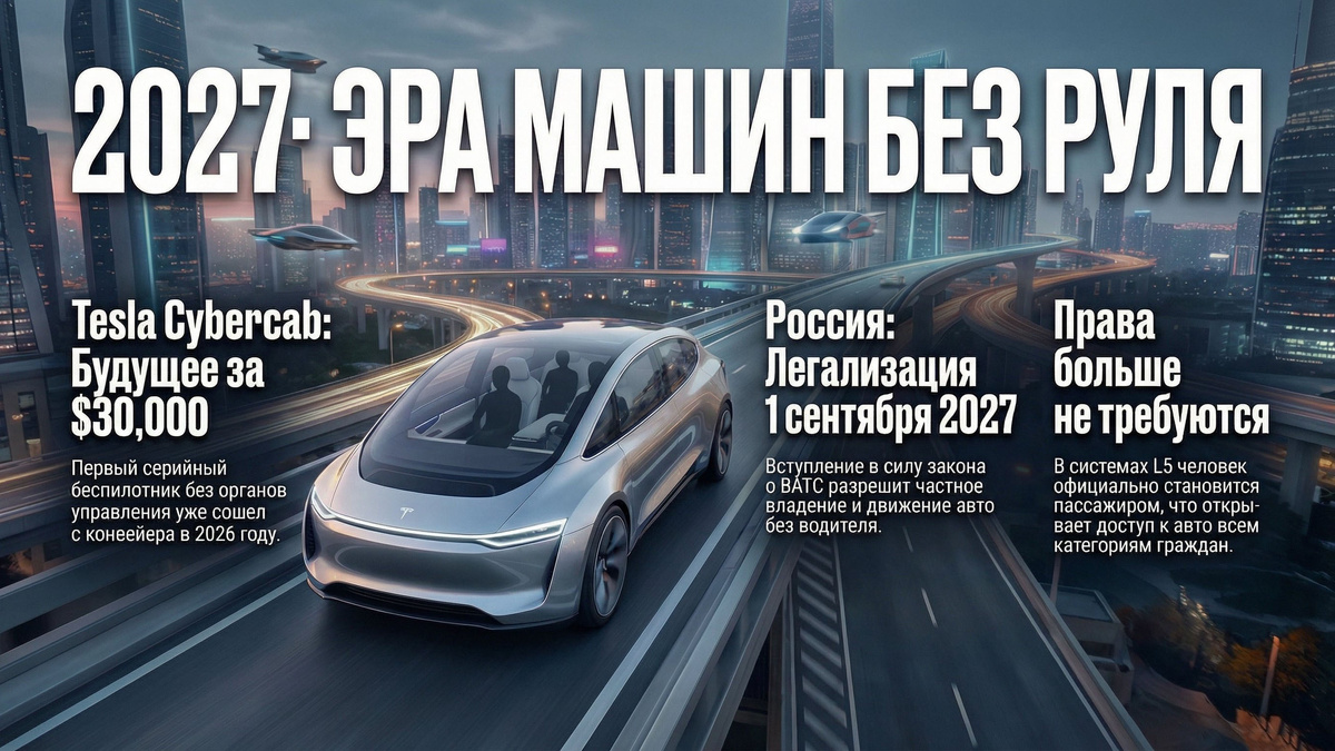 Теперь перенесемся в Россию. Здесь идет активная подготовка законодательного фундамента, и точкой невозврата станет 1 сентября 2027 года — именно тогда вступит в силу новый федеральный закон, разрешающий ездить высокоавтоматизированным машинам без человека за рулем. Ожидается, что внедрение беспилотников может приносить экономике страны до 4,6 триллиона рублей ежегодно из-за снижения аварий и улучшения логистики!