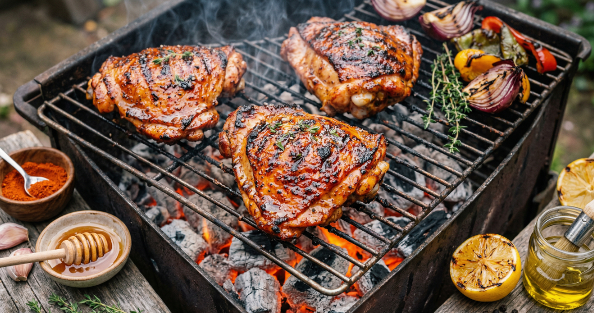Знаете, есть такие кулинарные открытия, которые делишь на «до» и «после». У меня так случилось с маринадом для курицы на углях. Годами я шёл по проторенной дорожке — кефир, лук кольцами, перец горошком. Иногда соевый соус, иногда аджика. Всё вкусно, спору нет, но в какой-то момент поймал себя на мысли, что курица на мангале превратилась в рутину. Вроде и угли правильные, и мясо свежее, а результат каждый раз предсказуемый. Никакого «вау». И вот однажды, роясь в шкафчике со специями в поисках обычной сладкой паприки, я наткнулся на банку копчёной. Купил когда-то для какого-то рецепта из интернета, использовал чайную ложку и забыл. А рядом стояла банка мёда, уже слегка засахарившегося. И тут что-то щёлкнуло в голове — а что если совместить?