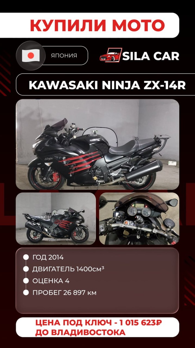 🔥 Никаких скрытых комиссий ❗️Работаем строго по договору ┏ Реально честная комиссия: ┣ 50 000₽ на авто до 1 млн ₽ ┣ От 1 до 2,5 млн. ₽ - 70.000₽ ┗ От 2,5 млн. ₽ - 100.000₽ САМЫЕ ЧЕСТНЫЕ ЦЕНЫ НА РЫНКЕ⬇️ Объём двигателя, см2 1400 Мощность, л.с. 200 Цена "на кнопке" ¥792 000 р.414 136,80 Аукцион JBA Расходы по Японии ¥115 000 р.60 133,50 Фрахт $1 000,00 р.81 500,00 Итого стоимость по инвойсу ¥1 062 862 555 770,30 ₽ Таможенный сбор 4 269,00 ₽ Пошлина 55 577,03 ₽ Акциз 122 600,00 ₽ НДС 162 407,59 ₽ Брокерские услуги, СВХ, погрузо-разгрузочные работы, прохождение лаборатории р.55 000,00 Приёмка и забор мотоцикла с СВХ, доставка до лаборатории, доставка до стоянки р.10 000,00 Честная комиссия СИЛА КАР р.50 000,00 Итого во Владивостоке: 1 015 623,92 ₽ 🔴Купил менеджер Дмитрий 📱 +7(908)979-36-94 📱 @SilaCar_DmGor ❇️ +7(908)979-36-94 👉Для ПОКУПКИ МОТО жмите сюда💪 💻Самостоятельный расчет на нашем сайте: silacar.ru Или звоните: +79084532873 ❗️А для те