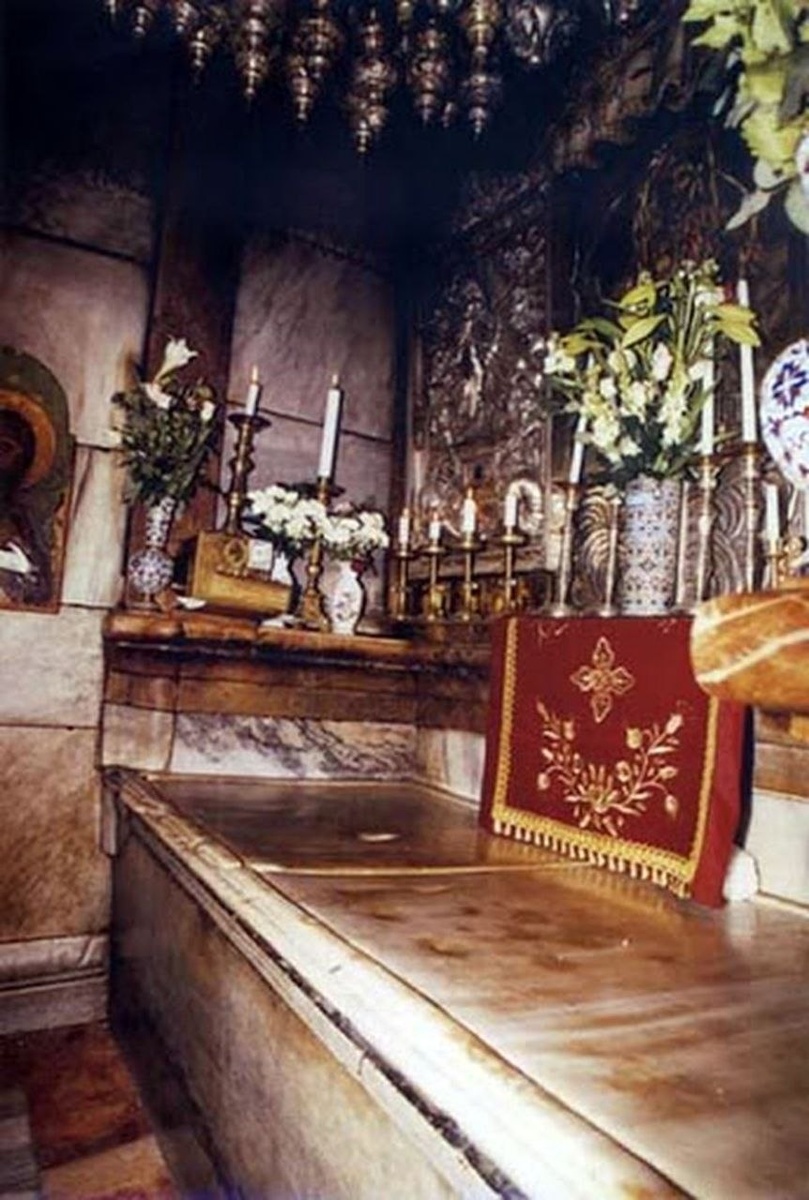 На фото то самое место - пещера Воскресения внутри Кувуклии, Храм Гроба Господня, Иерусалим