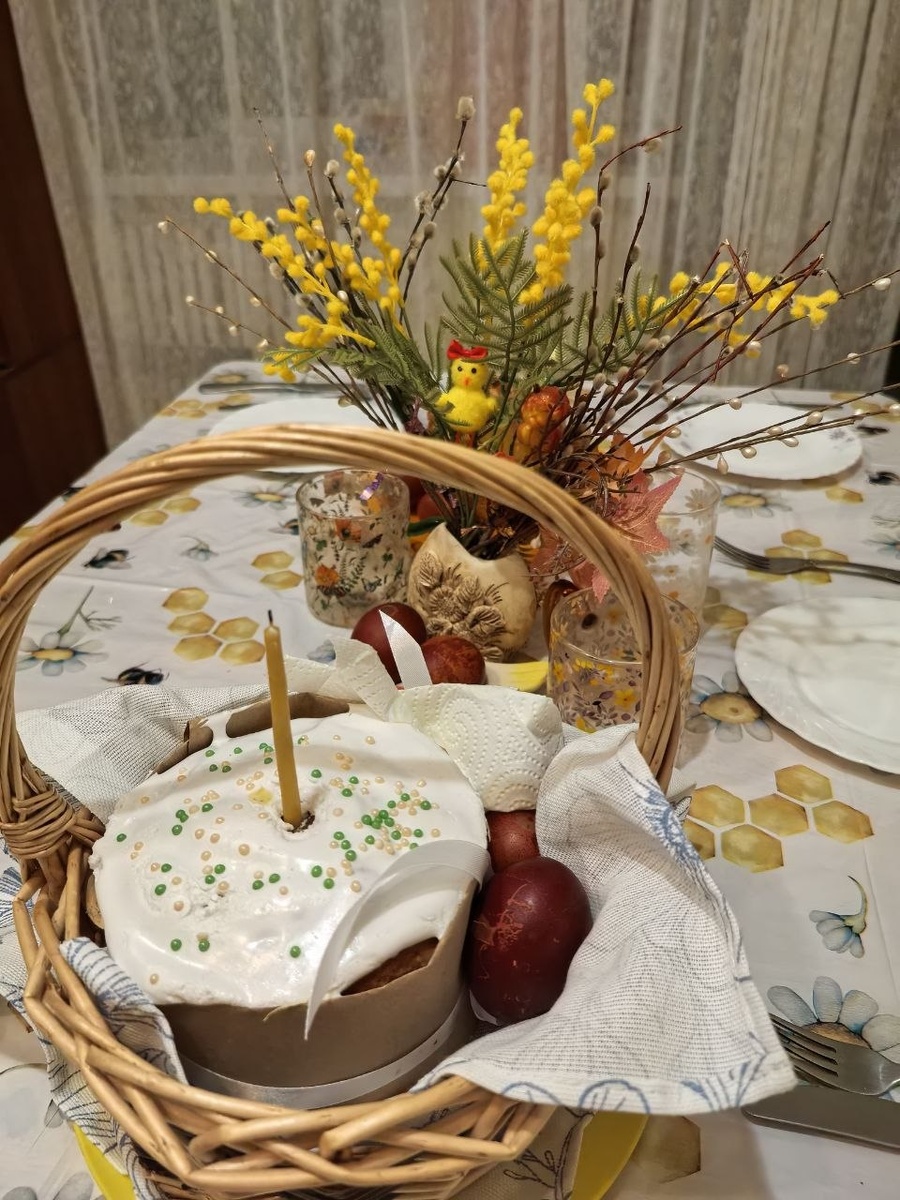 Христо́с воскре́се из ме́ртвых,/ сме́ртию смерть попра́в,// и су́щим во гробе́х живо́т дарова́в.