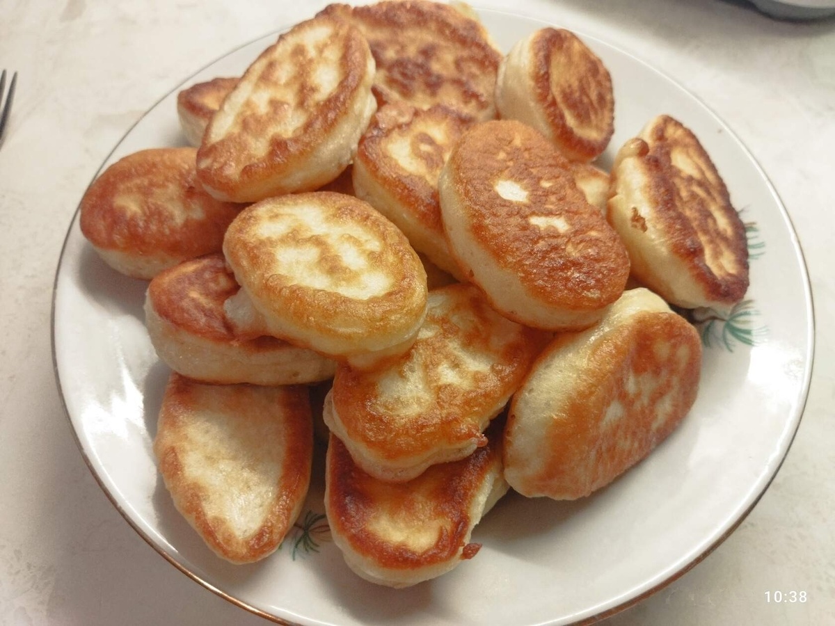 Всего три продукта, результат пышные и очень вкусные штучки. Как уже отметил готовятся без соды, кефира и разрыхлителя. Основа куриные яйца, мука, сахар и немного сока лимона. Воздушность достигается за счёт правильно взбитых белков, оладьи получаются высокими с золотистой корочкой и нежной пористой серединой. Ингредиенты: яйца — 2 шт. мука — 3 ст. ложки сахар — 2 ст. ложки соль — щепотка лимонный сок — 1 ч. ложка растительное масло для жарки. 👉как приготовить⁉️ Отделите белки от желтков. Желтки растираем с сахаром, добавляем муку и всё хорошо мешаем. Отдельно взбиваем белки с солью и лимонным соком в крепкую пену. Вмешиваем белки в желтковую массу венчиком снизу вверх. На слабом огне в разогретом масле жарим оладьи под крышкой по 2–3 минуты с каждой стороны. Подаëм сразу горячими, со сметаной или вареньем😋