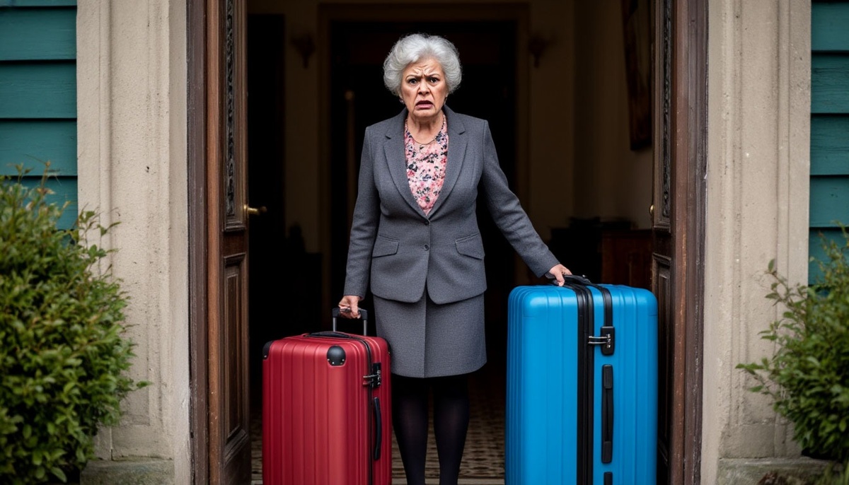 Ровно в одиннадцать утра следующего дня — суббота, солнечная, подлая — раздался звонок в дверь. Три коротких, властных, как выстрелы. Я открыла. На пороге стояла Галина Петровна. Не одна. С ней были два здоровенных синих чемодана на колёсиках, дорожная сумка через плечо и клетчатая авоська с банками, из которой выпирали укроп и зелёные помидоры.