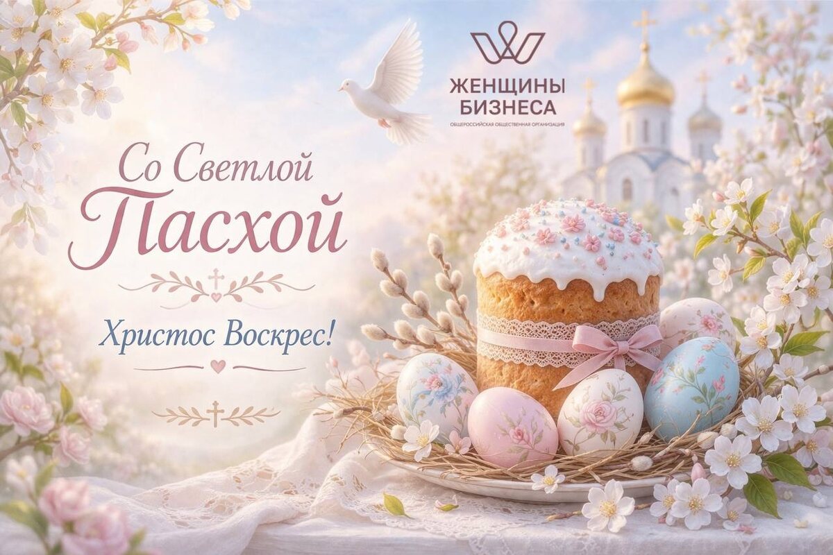 🐣 Пусть этот светлый праздник наполнит ваш дом теплом, душу — спокойствием, а сердце — верой и любовью. Пусть рядом будут близкие люди, поддержка чувствуется в каждом дне, а в жизни становится больше радости, гармонии и уверенности в завтрашнем дне. Пусть всё задуманное складывается легко, а добро, которое вы создаёте, возвращается. С любовью и теплом, Ассоциация «Женщины Бизнеса» 🩷