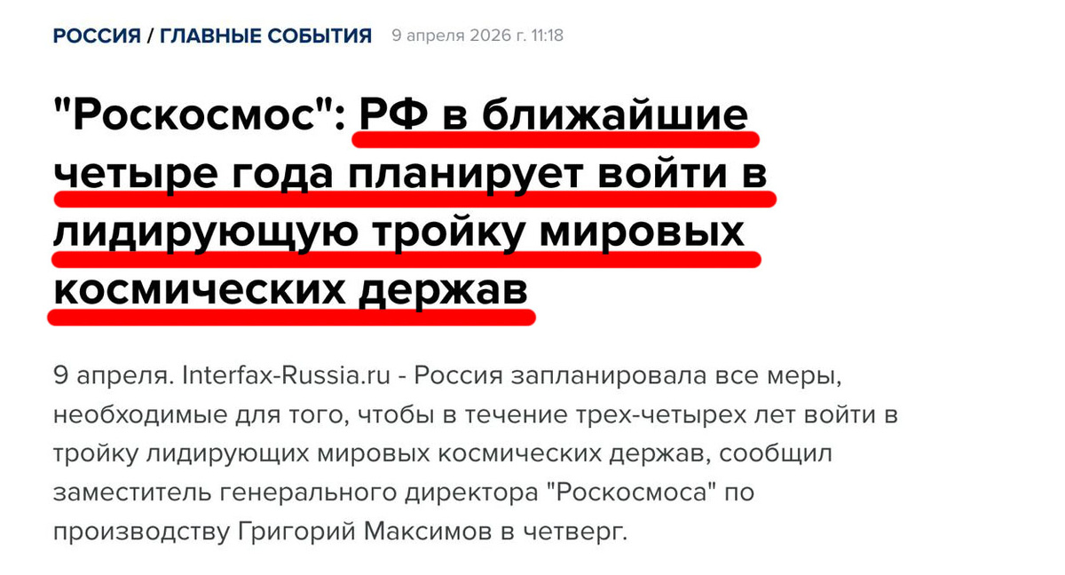 По случаю Дня космонавтики хотел бы обратить внимание подписчиков на новость о том, что Роскосмос планирует вывести Россию в тройку мировых космических держав: Звучит диковато для тех, кто привык, что наша страна была всегда на первом месте в мире по освоению космоса и числу космических запусков, а тут поставлена цель войти в тройку лидеров. Возникает закономерный вопрос, а когда мы успели выйти из этой тройки и кто наш соперник за 3-е место по числу пусков? Википедия беспристрастно сообщает, что наш соперник -- это Новая Зеландия, с чьей территории частная компания Rocket Lab давно запускает свои ракеты и уже второй год подряд идет с нами вровень по числу пусков. Небольшим утешением может служить лишь тот факт, что в Новой Зеландии запускаются небольшие ракеты с малой массой полезной нагрузки, а не с большой, как в России. Тем не менее факт есть факт: наша страна, когда-то первая открывшая человечеству дорогу в космос и бывшая долгие годы мировым лидером, теперь давно уступила свое ли