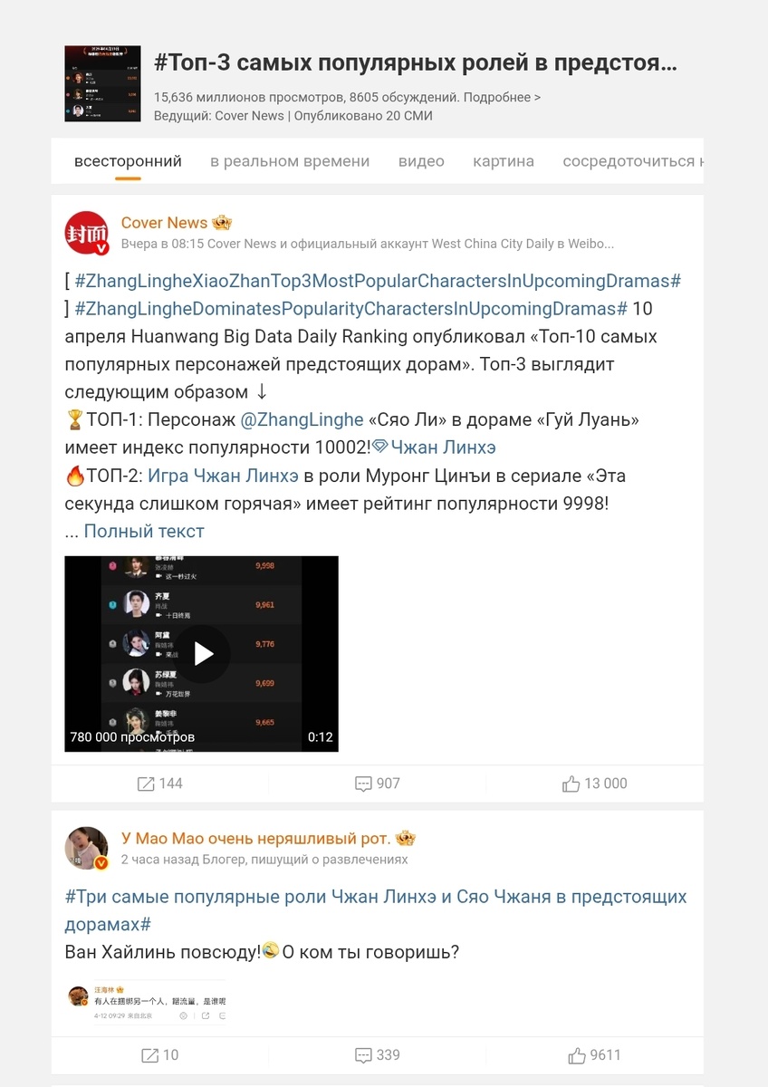 И ненавязчиво намекнули, что предыдущие дорамы провалились, что имя актёра из двух иероглифов и он пользуется псевдонимом...неужели это Чэн И? У темы сейчас 150 млн просмотров. Ответка прилетела в десять раз тяжелее.