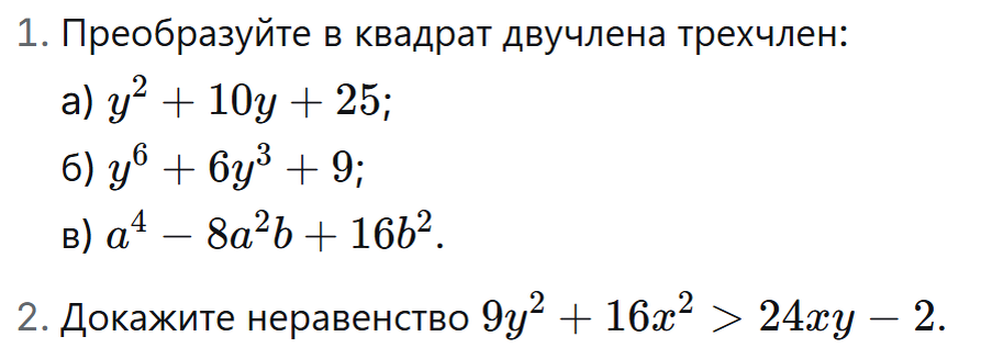 А7 ДЗ Преобразование трёхчлена в квадрат двучлена. Доказательство неравенства